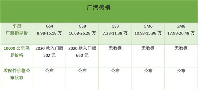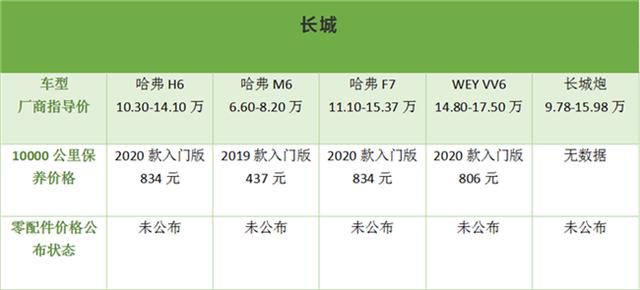 在《道哥说车》小编收集的这八家自主品牌售价在7万左右起步的热销车型中,10000公里基础保养所需费用最高的是哈弗M6和捷途X70的430元,最低则为宝骏530的263元。但从整体平均值来看,长城汽车旗下产品的基础保养费用明显要高于其他品牌,而这八家车企中只有广汽传祺公布了零配件售价。