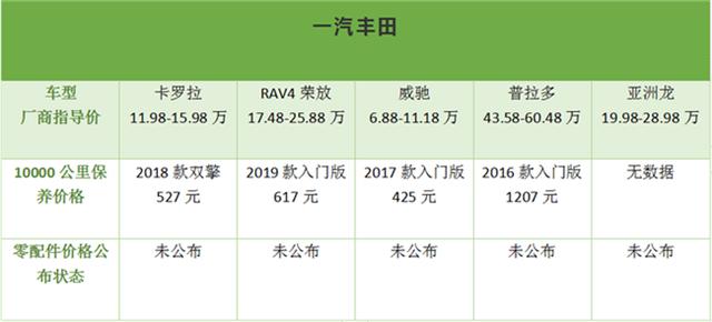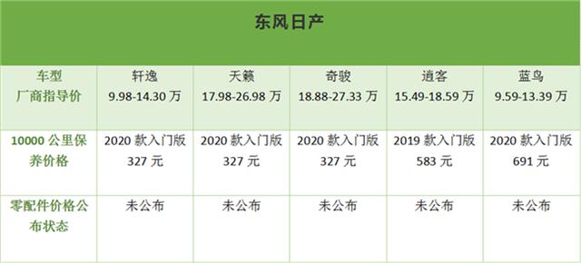 注明:不同价格车型,不同地区消费水平不同工时费也不相同,所以本次盘点保养价格以10000公里为例(数据来源汽车之家),仅供参考,具体情况以本地区到店实际为准。