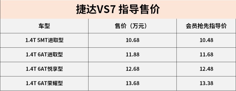 传承大众设计、搭载1.4T发动机 捷达VS7上市售10.68-13.68万元